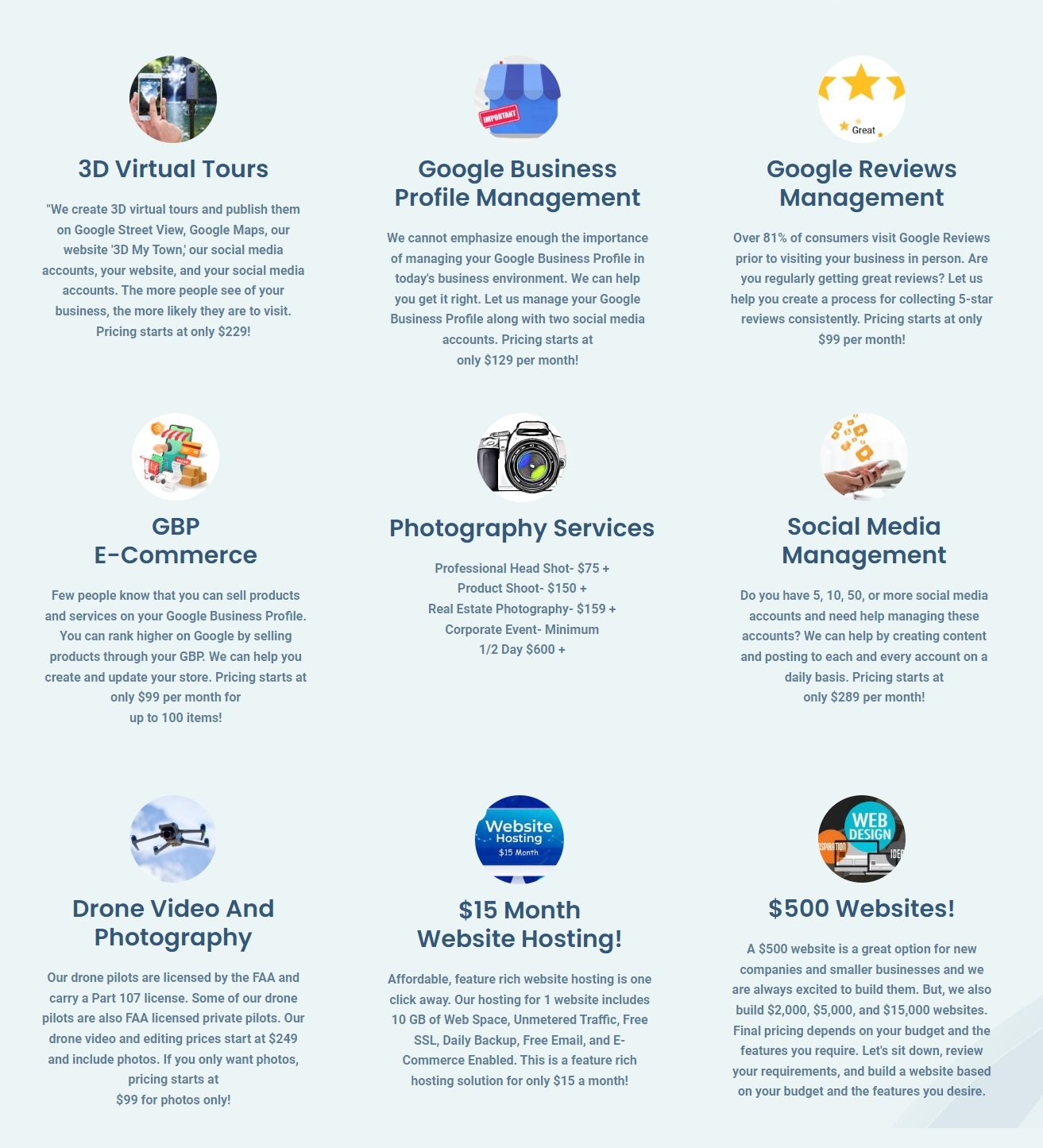We focus on enhancing the effectiveness of your Google Business Profile using innovative technology like 3D Virtual Tours and engaging content creation. But our services encompass more than just 3D Virtual Tours; we can manage your Google Business Profile, Social Media Accounts, Web Hosting, Website Development, and Commercial Photography needs. From 3D Virtual Tours to comprehensive technology solutions, we have you covered.